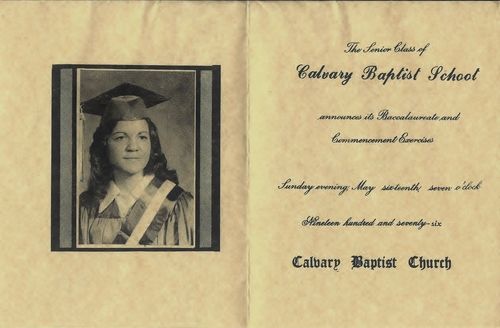 Calvary Baptist School's first graduate was the Whittington's youngest daughter, Gerri Whittington Morehouse. She was the only graduate of 1976.